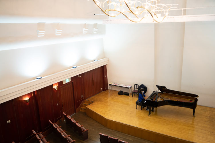 電車で3駅ほどの上星川から来られた塙 由理子さんは、このピアノの大ファンで、週に1〜2回利用されています。「自宅の楽器は電子ピアノなので、このスタインウェイはタッチも音色もまったく違います。ぜいたくな練習の時間です。このすばらしいピアノをきれいに鳴らせるようになりたいです」と話します。ハノンの指ならしから始めて、バッハのインヴェンション、ジブリの曲などを練習されていました。