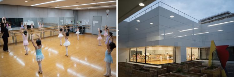 夕方になると「カルチャー工房」に子どもたちが集まってきました。週に2回ここを借りてモダンバレエ教室「クリエイティブバレエ」の活動が行われています。フローリングの床と鏡、レッスンバーを備えている広いこの部屋は、ダンス・演劇・合唱の練習に最適のため、バレエやフラダンス、ヒップホップダンスなど様々なグループが利用しています。グループの活動している様子は中庭に面した窓越しに見えるので、入会希望者は、受付にあるグループリストを閲覧して連絡先を入手できます。地域のグループ活動に欠かせない場所となっているようです。