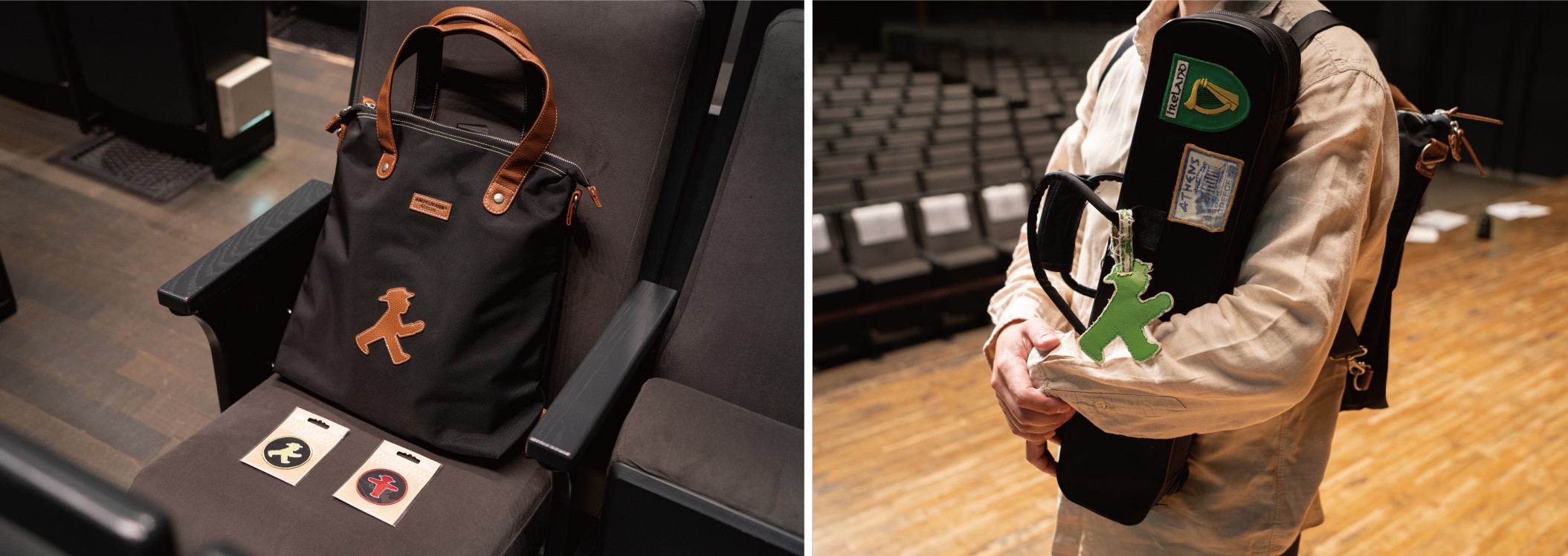 旧東ドイツの信号のマークをデザインした、アンペルマンのグッズ。カバンやワッペンがお気に入り。