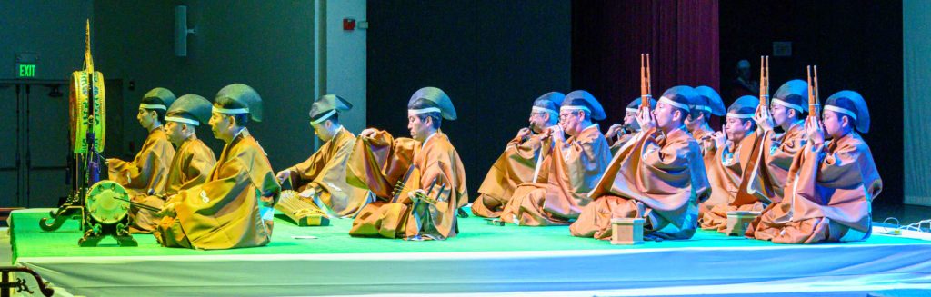 *今年3月、真鍋さんがプロデュースしたアメリカ・スタンフォード大学での雅楽公演。管楽器各3人、絃楽器各2人、打楽器各1人の計16人で演奏するのが通例となっていますが、管や絃の人数は増減することもあります