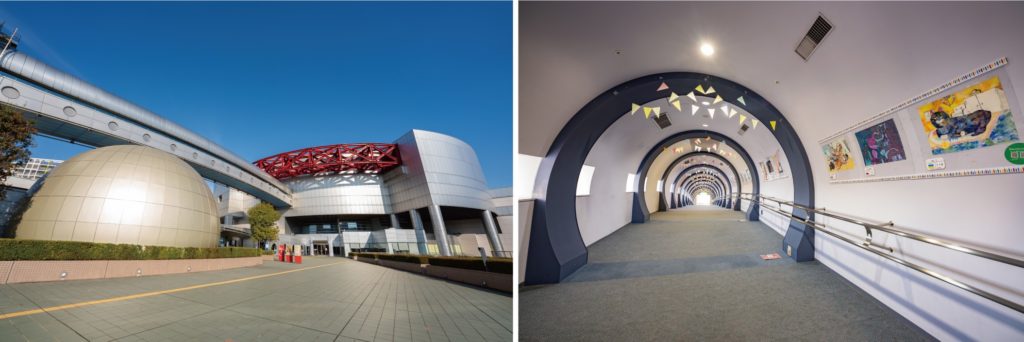 次の「こどもファンタジー展示室」へ向かう途中、宇宙空間へ飛び出すゲートの様な通路がありました。ここは外から見えていた橋のような部分で、この階に繋がっていたというわけです。