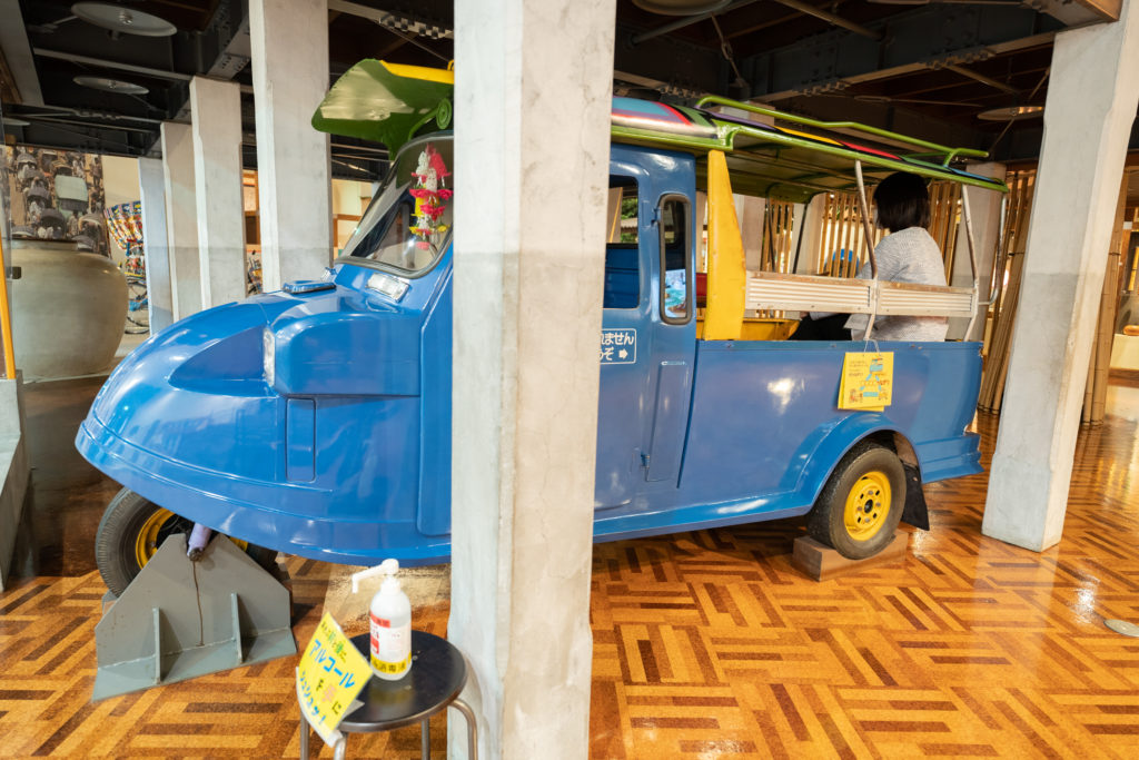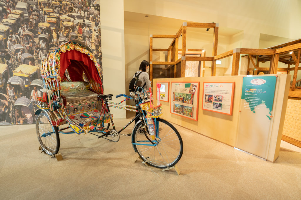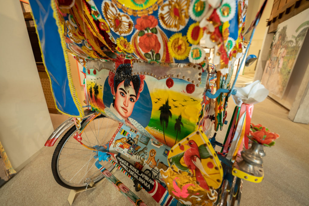 展示室の中で一段とカラフルで目立っていたのが、リクシャーという乗り物。日本の人力車がルーツで、バングラデシュ等で市民の毎日の移動手段として利用されている、いわゆる自転車タクシーです。