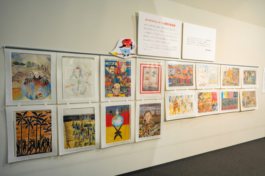 国際平和展示室で紹介されていた作品。「紛争」「人権侵害」「環境破壊」などがテーマの絵が、子どもたちの平和への想いを伝えます