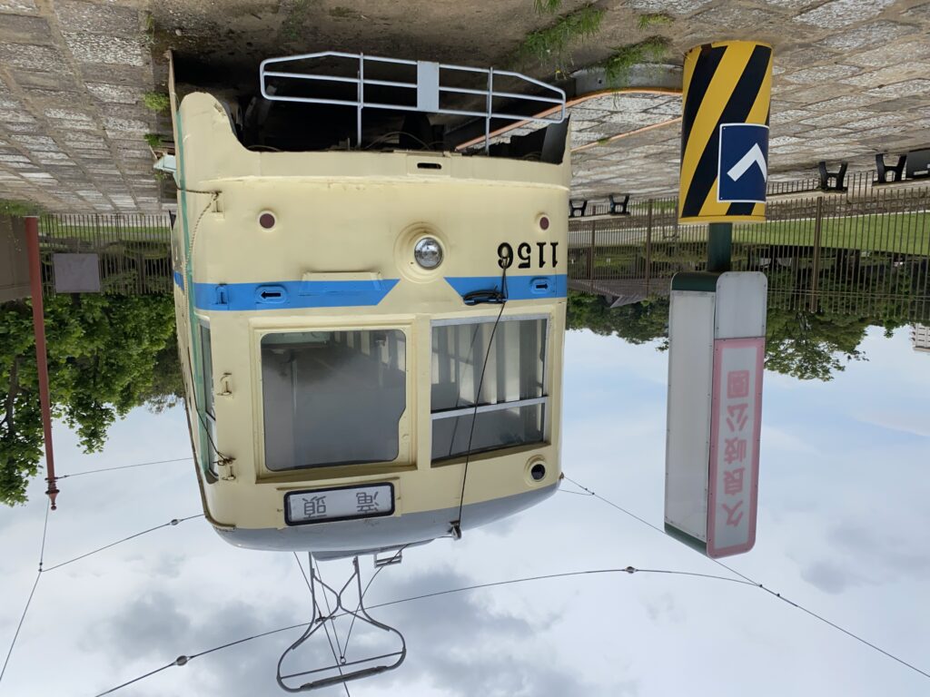 *春は桜の名所となり、広場には今はなき横浜市電の車両が保存されています