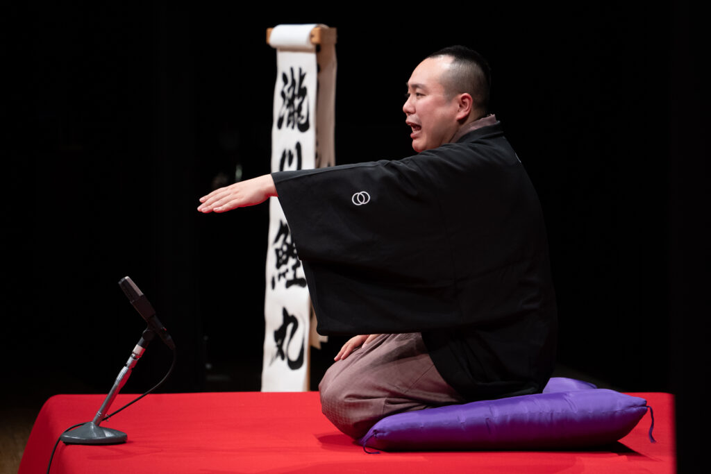 5月下旬、落語家の瀧川鯉丸(たきがわこいまる)さんと立川談吉さん、二人の若手による落語会「みどり花形寄席」が横浜市緑区民文化センター みどりアートパークで開催されました。鯉丸さんは軽快に高座に登場し、相撲取りを目指す若者が名横綱に出世するまでを描いた人情噺「阿武松(おうのまつ)」と、少し間抜けだけどどこか憎めない与太郎が主人公の滑稽話「かぼちゃ屋」の二席を演じ、客席を大いに楽しませました。終演後、落語家という職業や落語・寄席の魅力についてなどを、とても本番を終えた後とは思えないほど、サービス精神たっぷりにお話しくださいました。