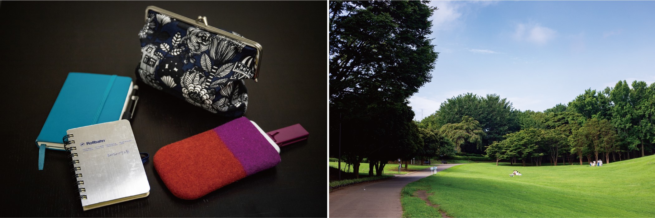 本牧出身で「横浜は空が広いのがいい」という帆足さん。中区にある根岸森林公園がお気に入りスポットだそう。(写真右)
